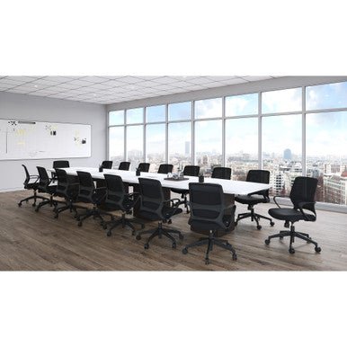 If you want to buy office furniture that makes a professional statement about your business, opting for this typical can be a great idea. It offers a decent boat shaped table top that spans a length of 20 feet. This table top is perfect for in large conference rooms due to its capacity to accommodate several people. This typical also features a cube base. The base and the table top both come in a variety of eight finishes, all of which assist in elevating the aesthetics of the room. The laminate construction of this base and boat shaped table top not only boosts the aesthetics, but also helps in keeping the furniture from wearing out. You can use the cube base to support the boat shaped table top and increase the office aesthetics with the perfect blend of furniture this typical brings to you.