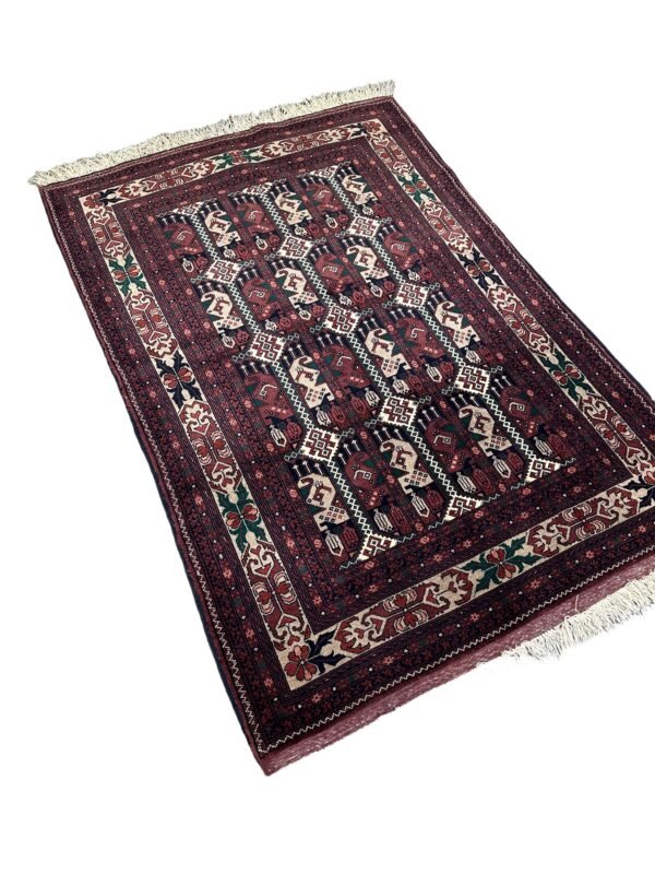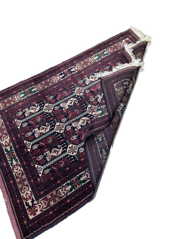 This 3×5 ft (0.91×1.52 m) Afghan rug represents ‘Export Quality’ craftsmanship. The ‘Artisan Estate’ design is woven with a higher knot density for international markets, ensuring superior detail and durability. It is a masterpiece of textile art for the discerning buyer, proudly showcasing its authentic Afghan origins.