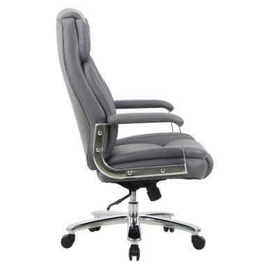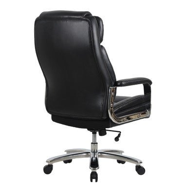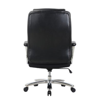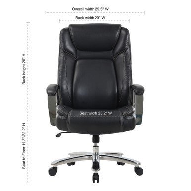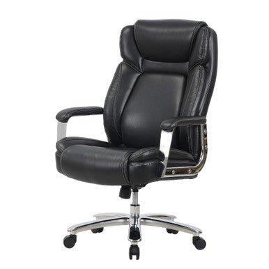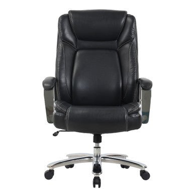 The Henley Big & Tall Executive Chair combines strength, style, and ergonomic support in a design built for everyday comfort. A high back with an integrated headrest supports your posture, while plush foam padding and active lumbar support move with you for lasting relief. Adjustable swivel-tilt controls let you find your perfect recline, and the waterfall seat edge eases pressure on your legs. With padded armrests, a heavy-duty steel base, and smooth-rolling casters, this chair is as durable as it is refined—finished in premium PU leather with contrast stitching for a professional look.