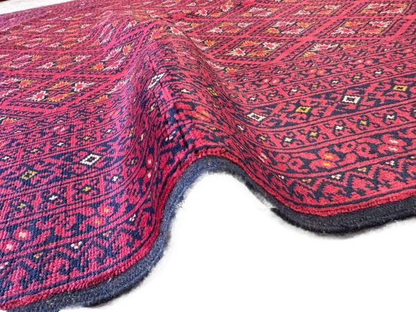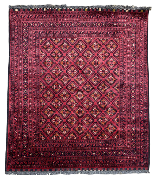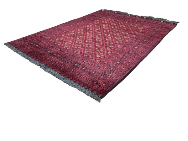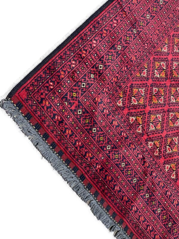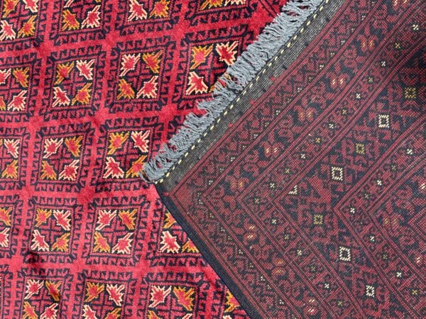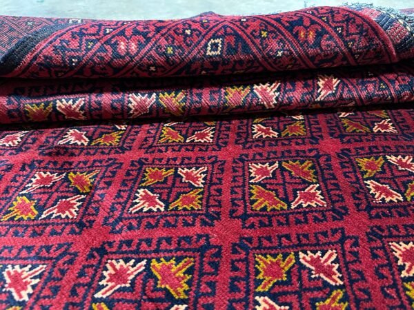 Discover the timeless beauty of this authentic ‘Nomad Collection’ rug. Meticulously hand-knotted by skilled artisans in Afghanistan, this piece features the iconic deep red palette and intricate geometric patterns that define this celebrated style. Made from durable, 100% Afghan wool, it offers both incredible softness and longevity.