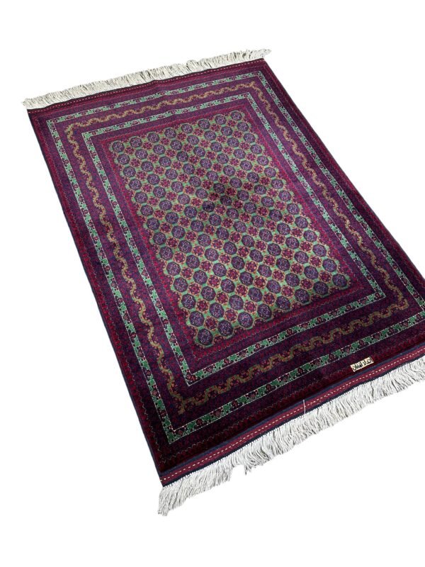 Indulge in the luxury of this hand-knotted ‘Artisan Weavers Collection’ rug. In a perfect 3×5 ft (0.91×1.52 m) size, it offers a velvety texture and a subtle sheen that only the finest wool can provide. The intricate design is a testament to the master weaver’s skill, a hallmark of its authentic Afghan heritage. A perfect small luxury rug.