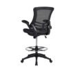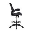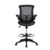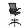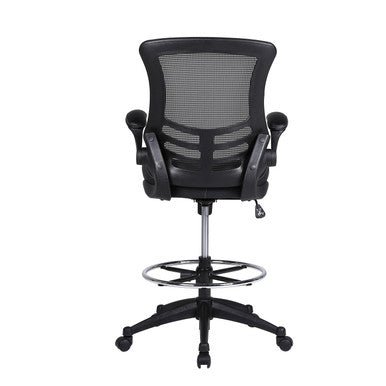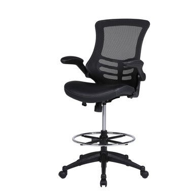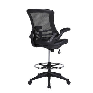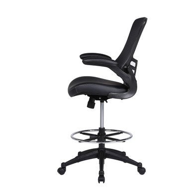 The Serene Collection task stool is designed for tasks and workspaces that require elevated seating while still providing dependable back support. Its cantilever arms flip up to help users work closer to surfaces or equipment, while the foot ring offers leg support and helps reduce fatigue during extended use. Finished in black bonded leather with mesh back and a coordinating black base, the stool combines comfort and practicality, making it well-suited for a variety of work environments.