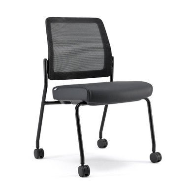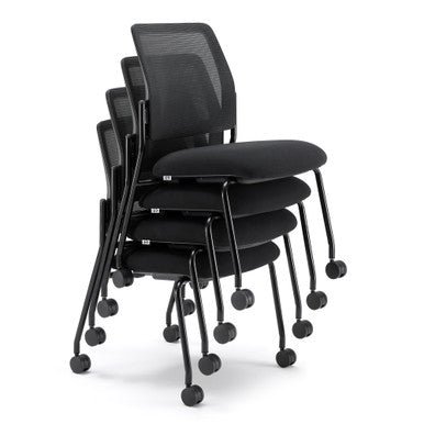 The Starlight Armless Stacking Chair extends the Starlight Collection to provide a cohesive seating solution across the workplace. Designed for versatility, this armless model features a breathable woven mesh back that matches Starlight task chairs, paired with an ergonomically shaped back and lumbar support. The molded PU foam seat with a waterfall front edge adds comfort, while the steel frame ensures durability. Built for flexibility, the chair stacks up to four high for efficient storage and includes both nonscratching floor glides and casters in the carton. Suitable for reception areas, training rooms, and collaborative spaces, the Starlight Armless Stacking Chair combines ergonomic support with space-saving functionality.