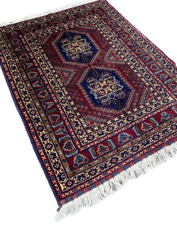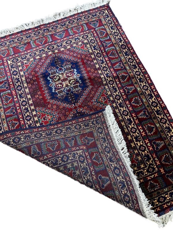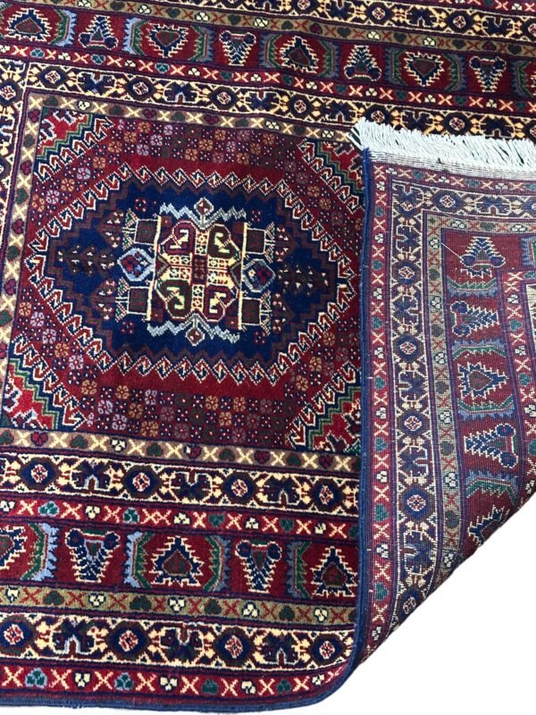 Step onto the softness and tradition of this 3×5 ft (0.91×1.52 m) Afghan wool rug. Crafted in the iconic ‘Frontier Collection’ style, it features the warm, earthy red tones and repeating medallions that are cherished worldwide. A testament to traditional Afghan weaving techniques, creating a piece that is both beautiful and functional.