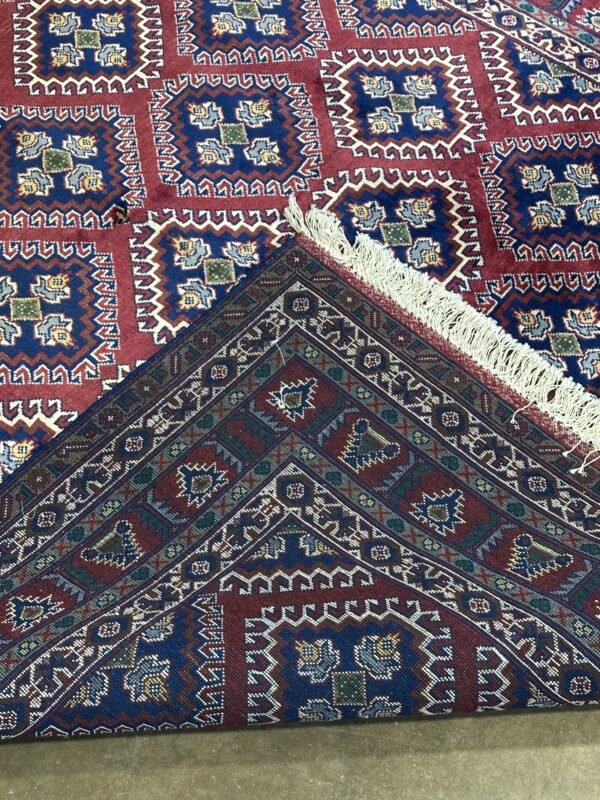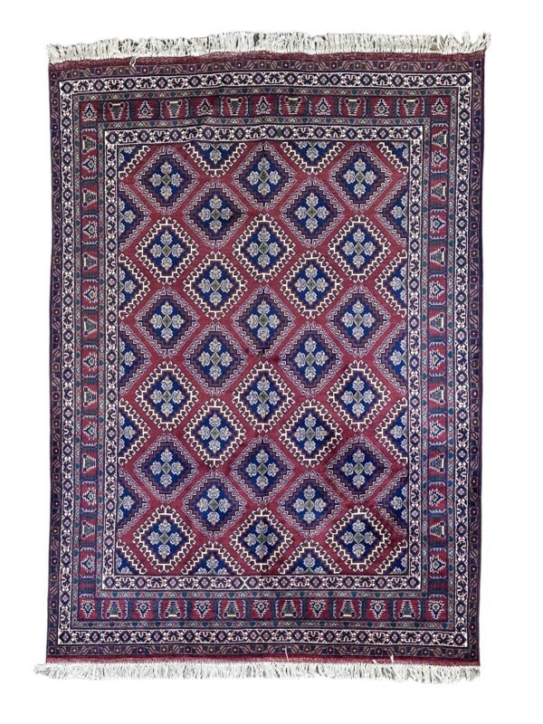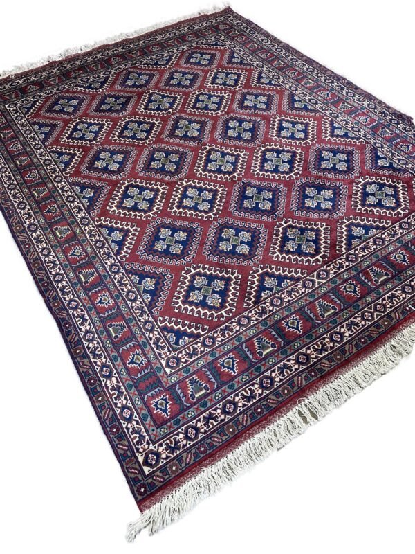 Step onto the softness and tradition of this Afghan wool rug. Crafted in the iconic ‘Frontier Collection’ style, it features the warm, earthy red tones and repeating medallions that are cherished worldwide. This rug is a testament to traditional weaving techniques from Afghanistan, creating a piece that is both beautiful and functional.