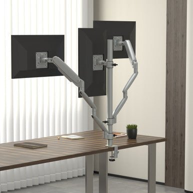 Enhance your workspace with this sleek Triple Arm Monitor Arm, designed for both functionality and style. It includes both grommet and clamp mounting options, ensuring easy installation to suit your desk setup. The integrated USB-A and USB-C ports provide convenient charging options for your devices. With a weight capacity of 19.5 lbs per arm, this monitor arm offers sturdy support for a range of monitors, allowing you to create a more ergonomic and organized workspace. Perfect for boosting productivity and minimizing desk clutter, this monitor arm is a versatile addition to any office.